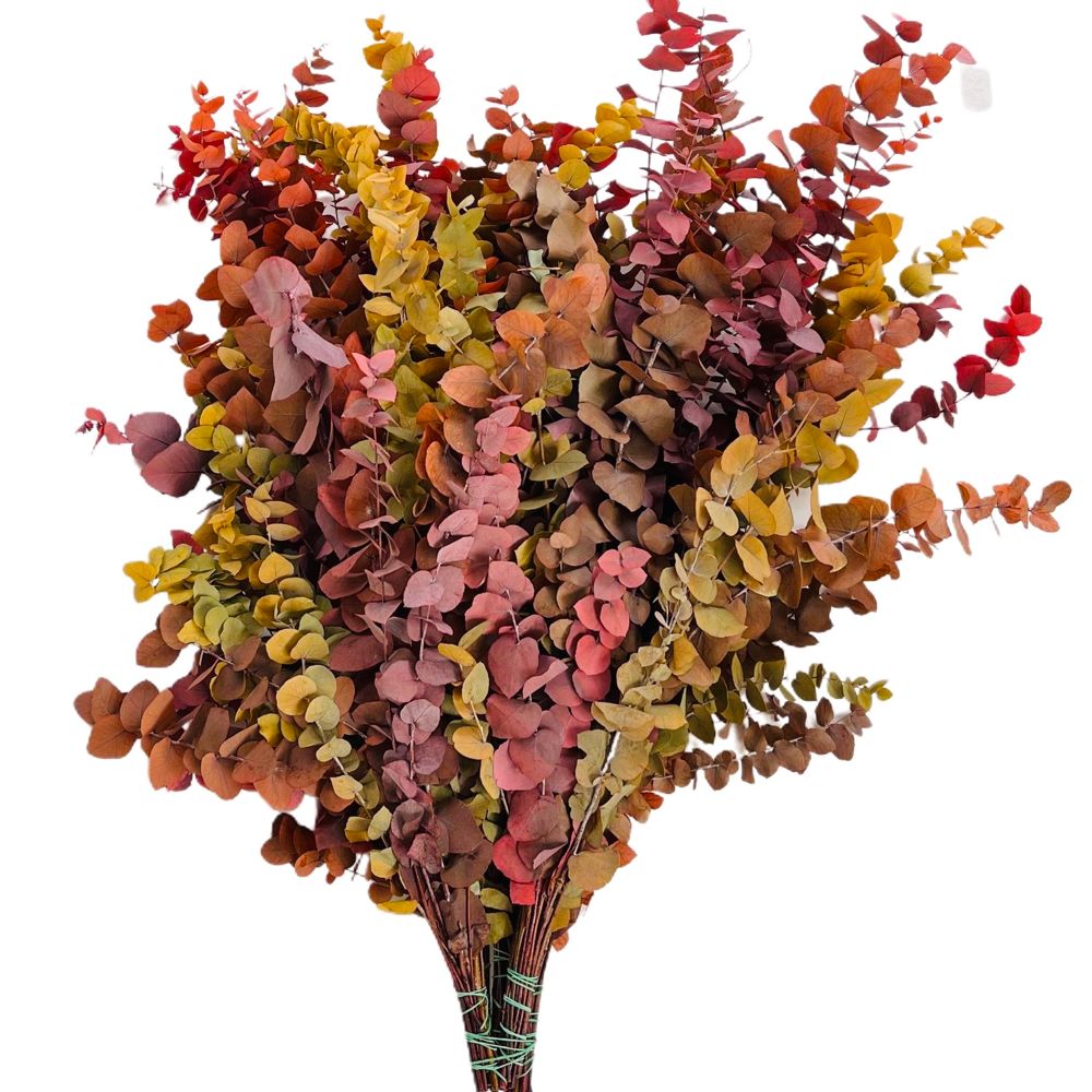 I colori autunnali, come tonalità calde di marrone, arancione, rosso e giallo, rendono questo eucalipto perfetto per creare atmosfere accoglienti e di stagione. È ideale per decorazioni di interni, bouquet, centrotavola o anche per allestimenti di eventi. La sua texture naturale e i colori caldi si abbinano facilmente a molte altre decorazioni autunnali, dando un tocco elegante e duraturo.